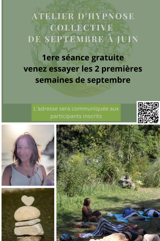 L’hypnothérapie, l’art thérapie, l’EFT ou encore la numérologie accompagné d’une formation en psychologie générale et de soins énergétiques sont les outils que j’utilise durant ces ateliers d’hypno-relaxation pour vous permettent de trouver vos propres solutions durant ces temps que vous vous accordez chaque semaine ou ponctuellement afin de vous faire évoluer vers ce qui est juste et bon pour vous.
